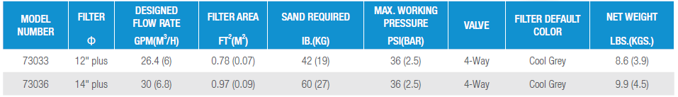 This series of sand filters is specially designed for above-ground pools and splash pools. It is high performance, totally corrosion-proof filter that blend superior flow characteristics and features with ease of operation. The filters will provide crystal clear water with minimal care.